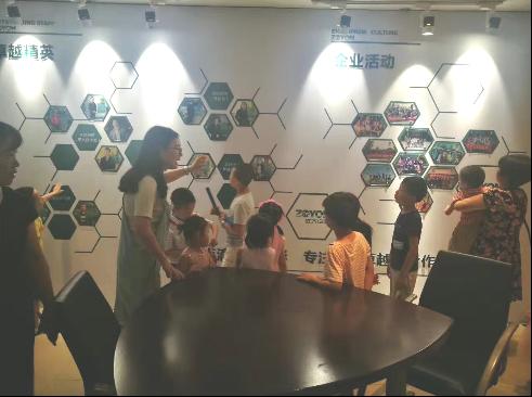 小朋友們在行政管理部童經(jīng)理的帶領(lǐng)下參觀爸爸媽媽的工作場所。