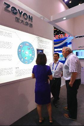 展會中武大卓越自主研發(fā)的交通資產(chǎn)管理平臺,以交通資產(chǎn)“一張圖”為理念,結(jié)合交通大數(shù)據(jù)、云計算等前沿科技,獲得了眾多嘉賓的關(guān)注和贊許。圖為武大卓越董事長兼總裁曹民先生與到場領(lǐng)導(dǎo)和行業(yè)資深專家交流交通全資產(chǎn)平臺。