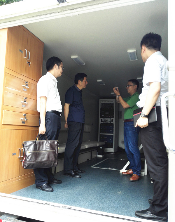 ?上圖為新疆生產(chǎn)建設(shè)兵團(tuán)黨委常委、副司令姚新民一行參觀激光動(dòng)態(tài)彎沉測(cè)量系統(tǒng)