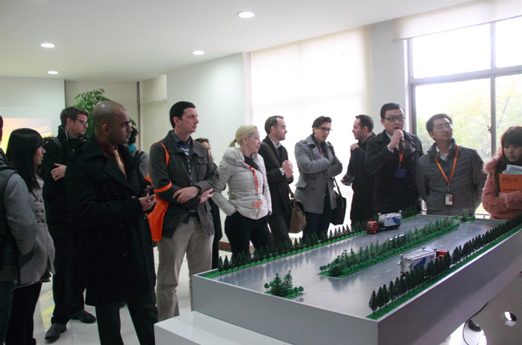 陪同過程中,事業(yè)部經(jīng)理盧毅及首席科學(xué)家工作室陳振興博士向其詳細講解了激光動態(tài)彎沉測量系統(tǒng)的產(chǎn)品原理、系統(tǒng)功能及目前取得的成果,并引領(lǐng)其觀看和講解了彎沉測量系統(tǒng)設(shè)備模型演示方案及彎沉測量系統(tǒng)工作界面方案。隨后移步于生產(chǎn)車間,觀看了卓越科技另一自主研發(fā)的智能道路檢測系統(tǒng)。迪肯商學(xué)院代表們對其非常感興趣并有秩序地登上智能道路檢測系統(tǒng),觀看智能道路檢測系統(tǒng)設(shè)備演示過程。