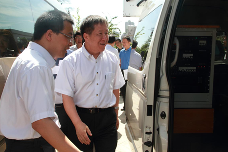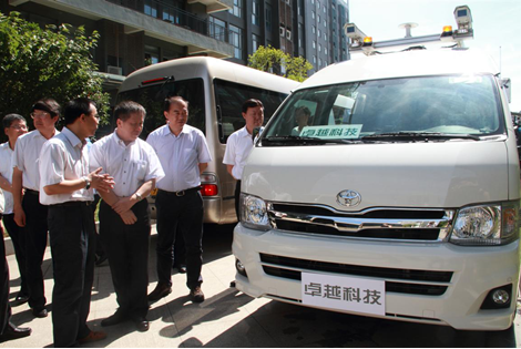 卓越科技副總裁張德津博士向曹健林副部長一行介紹智能道路檢測系統(tǒng)